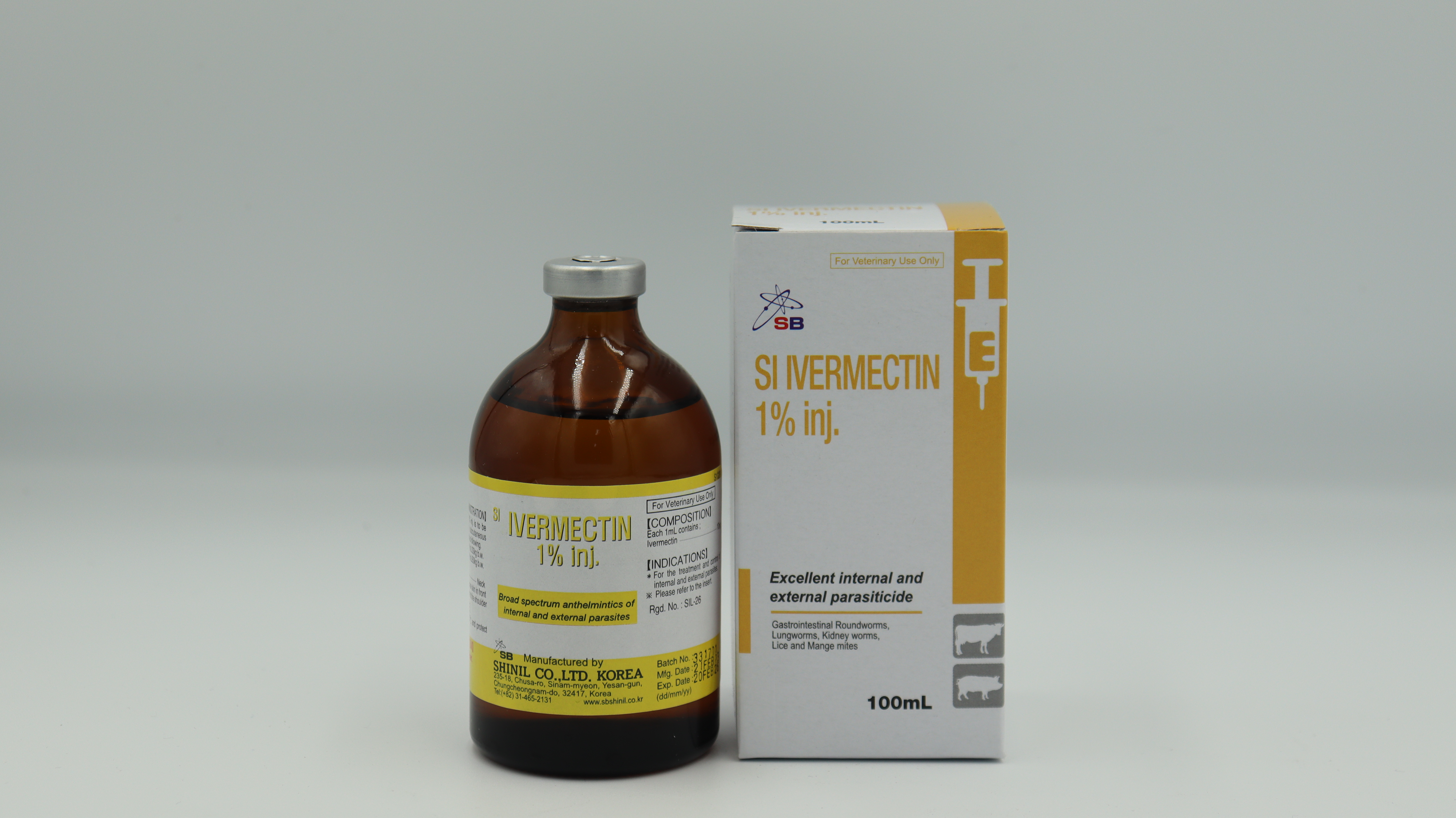 SI IVERMECTIN 1% INJ phòng và trị nội, ngoại ký sinh trùng. Được sản xuất từ công ty Shinil của Hàn Quốc.