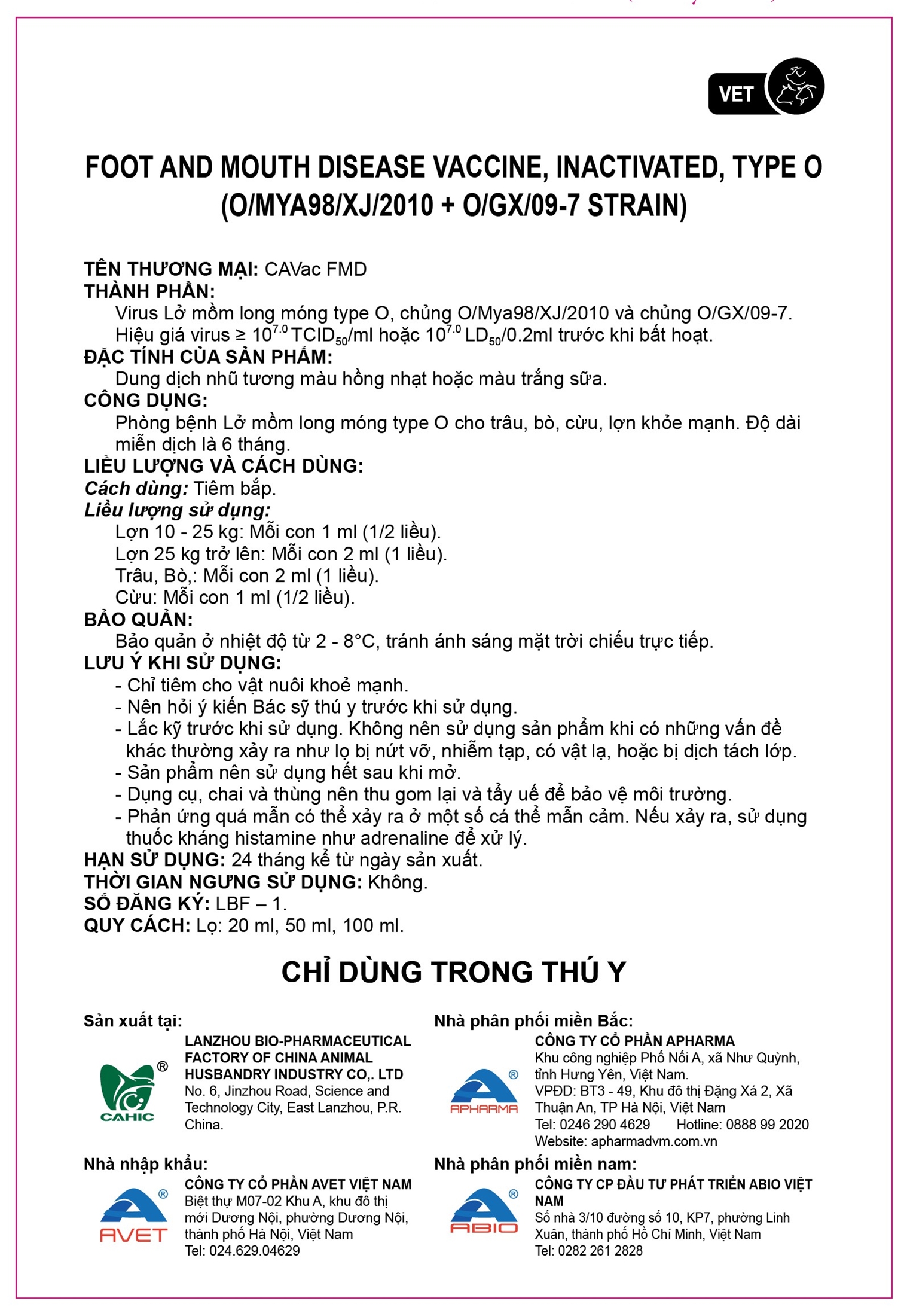 CAVAC FMD TYPE O